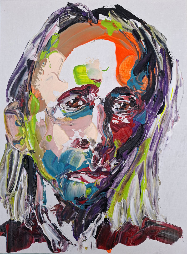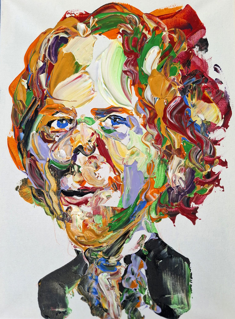 Knifeatures are a series within my Impasto Improv practice. A palette-knife portrait where exaggeration is expressed through colour, texture, and gesture rather than merely facial distortion. The likeness remains realistic; the caricature emerges through the physicality and energy of the paint. This is not a caricature of the face, but of the feeling. Where traditional caricature exaggerates form, Knifeatures exaggerate energy — a painterly, contemporary evolution of caricature.