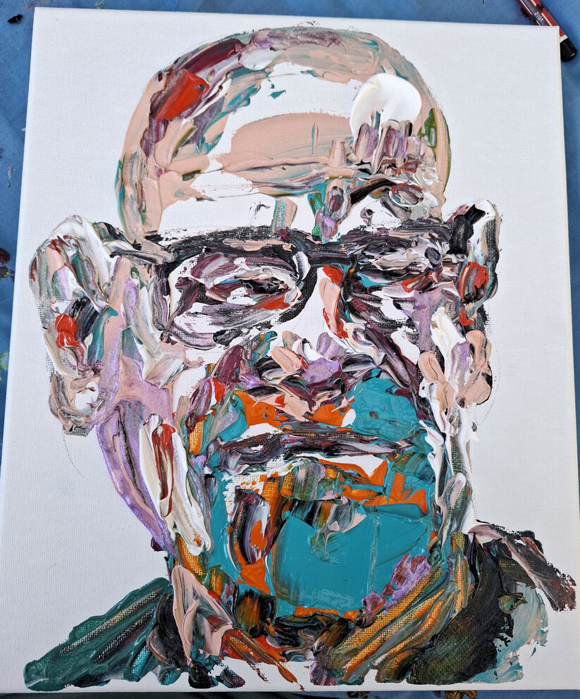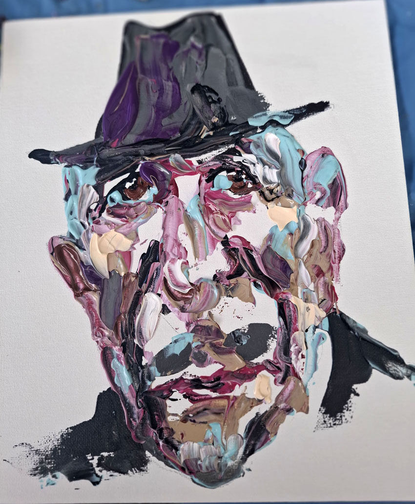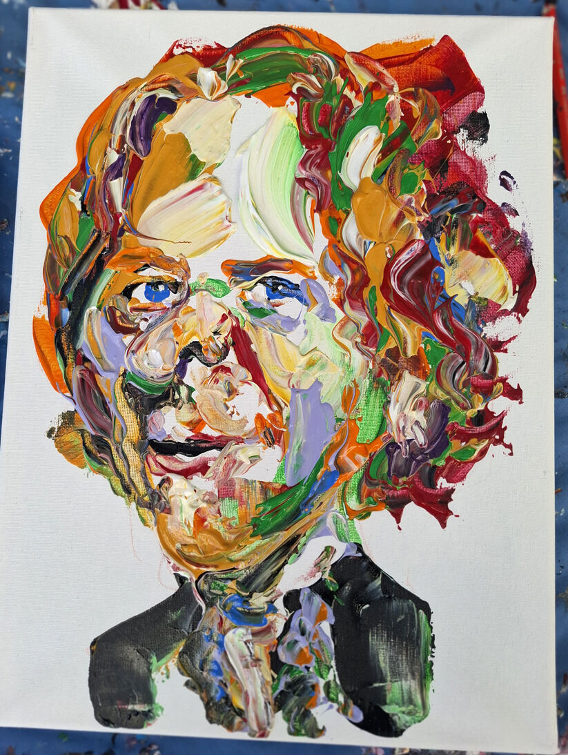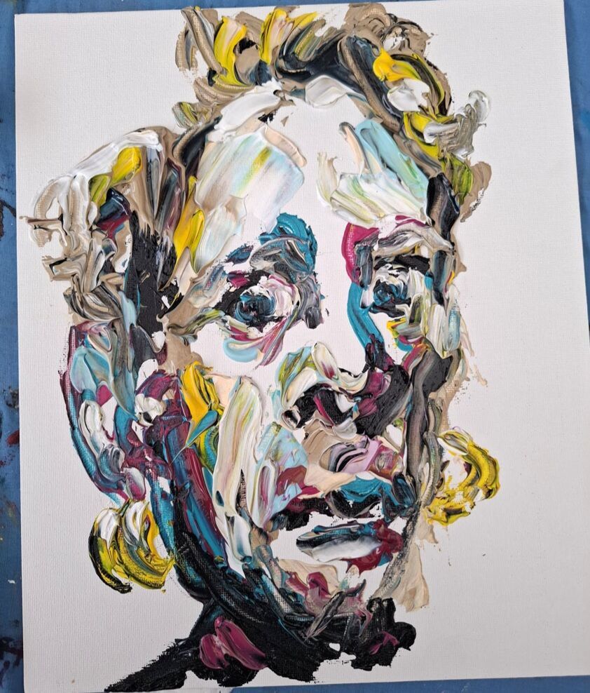 Knifeatures are my fast, impasto caricatures created entirely with a palette knife on small canvases. Each piece is painted in bold, energetic strokes that capture personality, expression, and attitude in minutes. Raw, textural, and spontaneous, Knifeatures blend caricature with contemporary palette-knife artistry—perfect for live events, unique gifts, or anyone who loves art with character and punch.